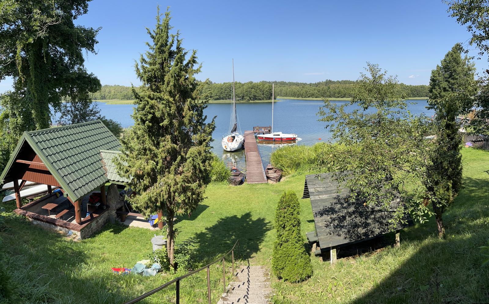 Bezpłatny parking, garaż na rowery, długi drewniany pomost (idealne miejsce wypoczynku i do łowienia ryb), drewnianą huśtawkę, zadaszone miejsce na grilla, zadaszony stół nad brzegiem jeziora (idealny na poranne śniadania z pięknym widokiem), miejsce na ognisko, łódki wiosłowe (w cenie noclegu), kajaki, dla doświadczonych żeglarzy możliwość wypożyczenia żaglówki.